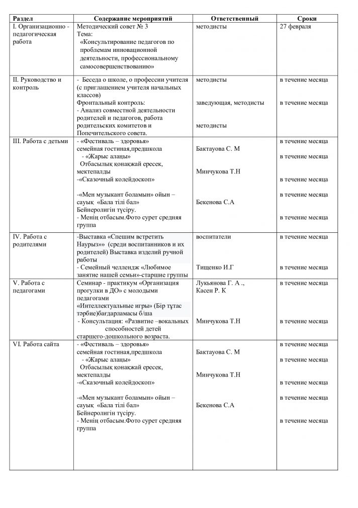 Ақпан айындағы жұмыс жоспары 2026 ж