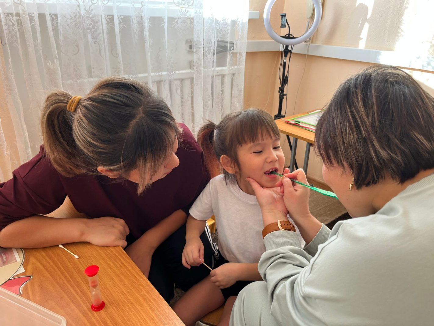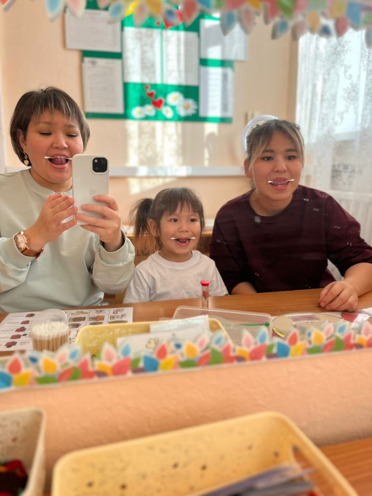 Балаға қойылған дыбыстардың артикулляциялық жаттығулар процесімен таныстыру, үй жағдайында жаттығуларды дұрыс жасау жолдарын түсіндіріп көрсету”. Логопед: Оспанова Акмарал Жемисовна